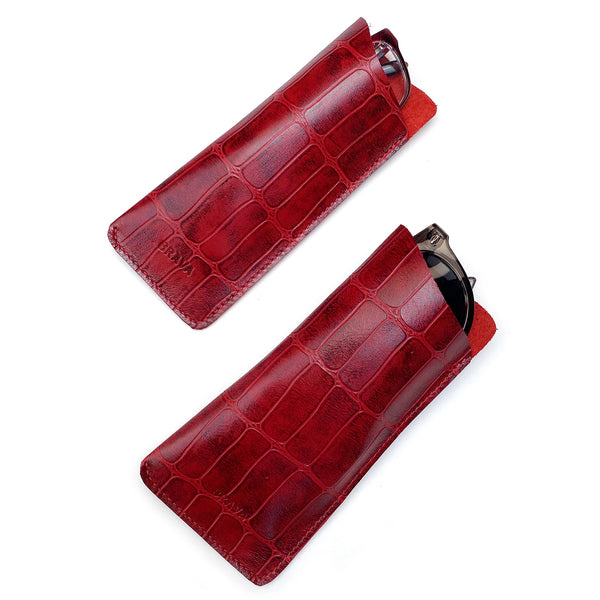 Funda para anteojos de cuero modelo JUDITH Caimán Rojo